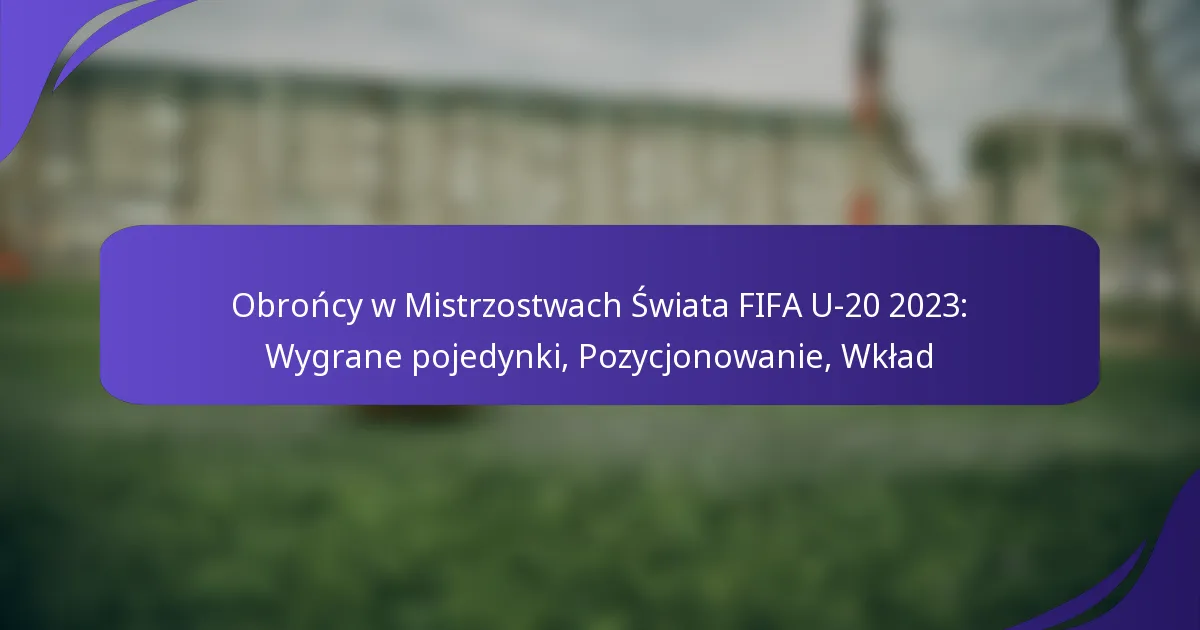 Obrońcy w Mistrzostwach Świata FIFA U-20 2023 zaprezentowali swoje umiejętności poprzez różne kluczowe statystyki, w tym wygrane pojedynki, wykonane wślizgi, przechwyty, wybicia i wskaźniki celności podań. Te metryki są niezbędne do oceny ich wkładu w wyniki drużyny oraz solidność defensywną podczas turnieju.