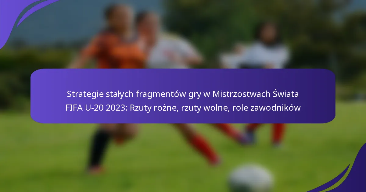 Jakie są kluczowe strategie stałych fragmentów gry stosowane w Mistrzostwach Świata FIFA U-20 2023?